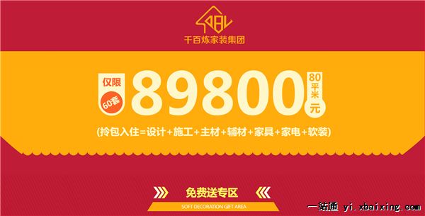 西安千百炼跨年样板房征集,集团千万补贴,前49户送价值49800元的大礼包包含 1.全房11件客餐厅家具 2.老板烟机,老板灶具,美的热水器,海信50寸液晶电视,小天鹅7公斤滚筒洗衣机 3.5000元VOC甲醛处理工艺 4.活动期间